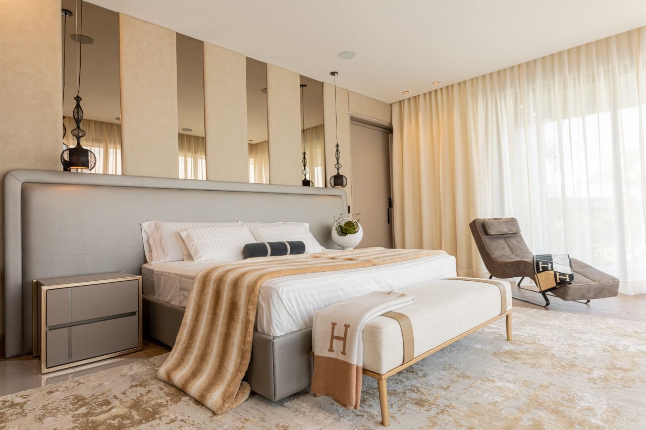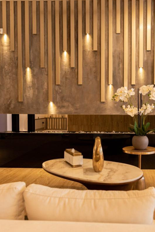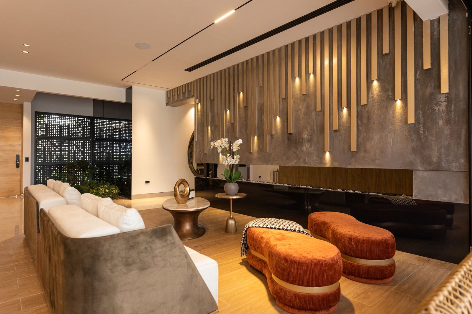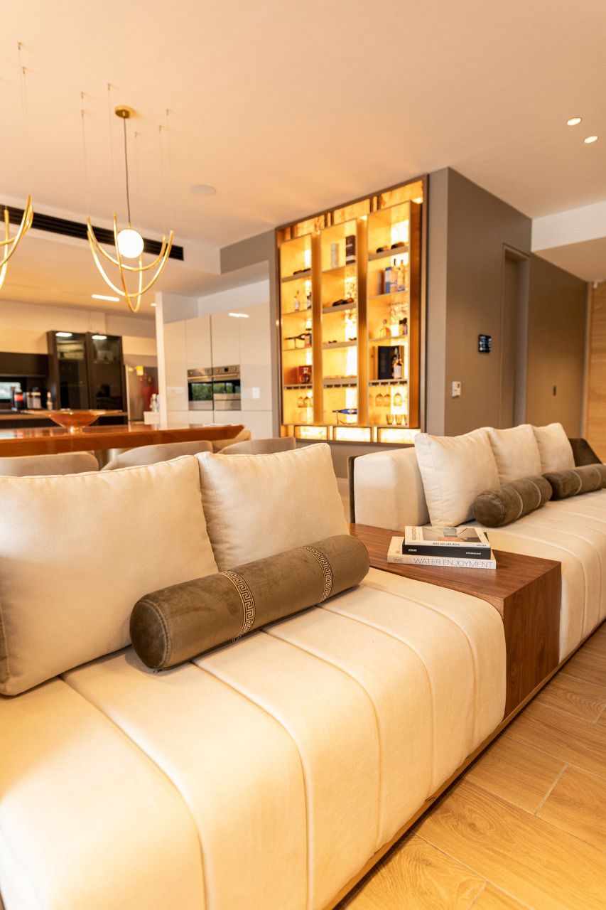 Funcionalidad y belleza convergen en equilibrio perfecto: un sofá amplio que invita al descanso, iluminación escultórica que moldea la atmósfera y detalles seleccionados con precisión, que infunden carácter y exclusividad. Este no es solo un espacio: es un refugio diseñado para quienes buscan un hogar que inspire y traduzca su esencia en cada trazo.