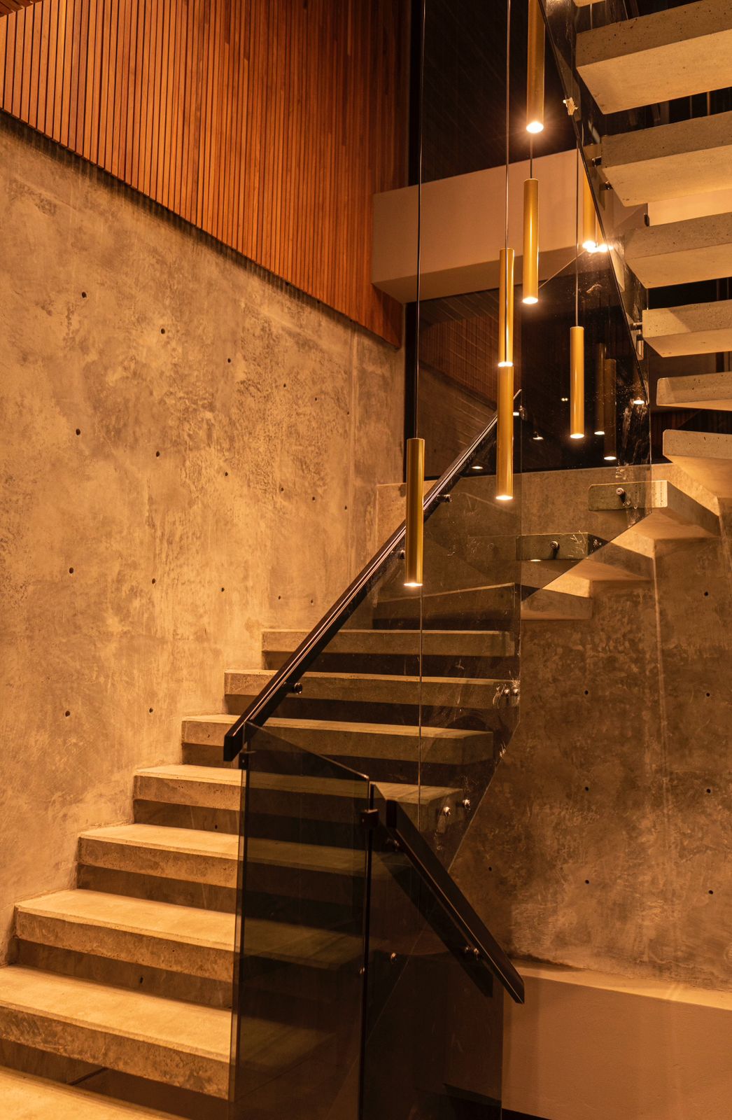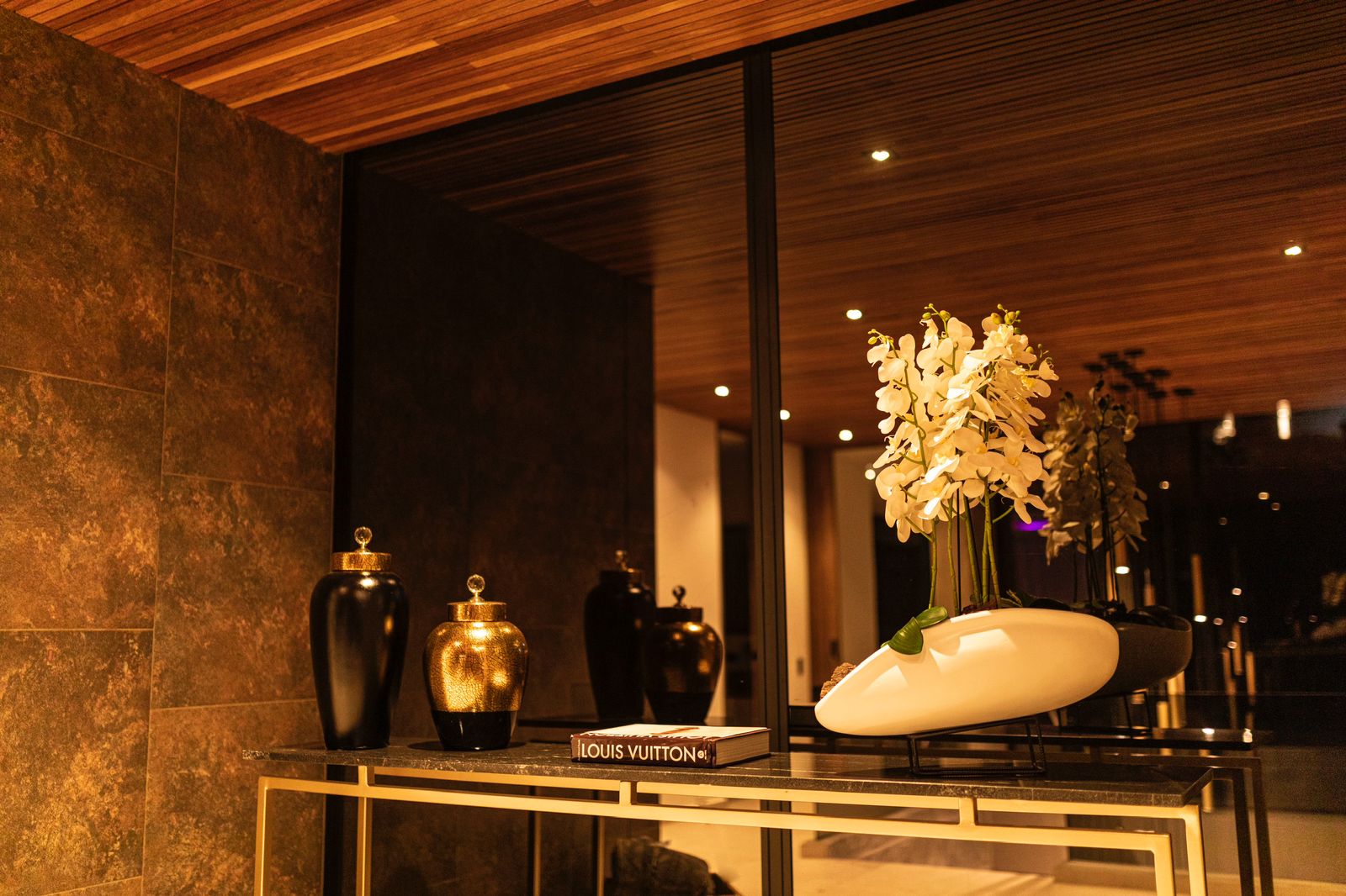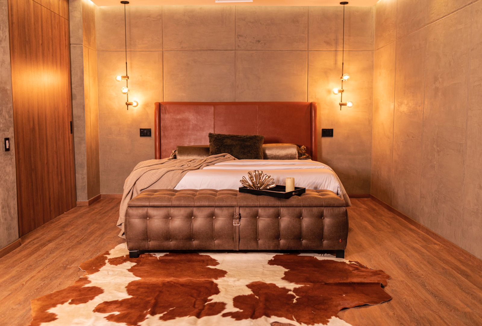 Un refugio de sofisticación donde la sobriedad y la elegancia dialogan en perfecta armonía. En cada rincón, el juego de materialidades se entrelaza con la luz cálida, resaltando las texturas y profundidades que otorgan carácter al espacio. La escala cromática, inspirada en la tierra, envuelve el ambiente en una atmósfera de calma y exclusividad, donde cada detalle ha sido pensado para exaltar la belleza de lo atemporal.