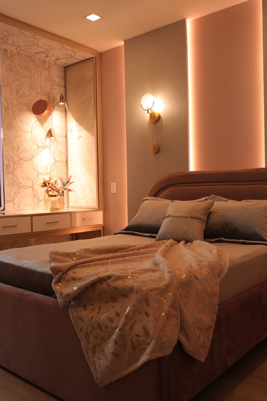 Un refugio de elegancia atemporal, donde la luz se desliza con sutileza sobre texturas exquisitas, revelando la profundidad de cada material elegido con maestría. Tonos neutros y terrosos envuelven el espacio en una atmósfera de calma refinada, mientras las formas curvas fluyen con naturalidad, evocando una sensación de equilibrio y exclusividad.
