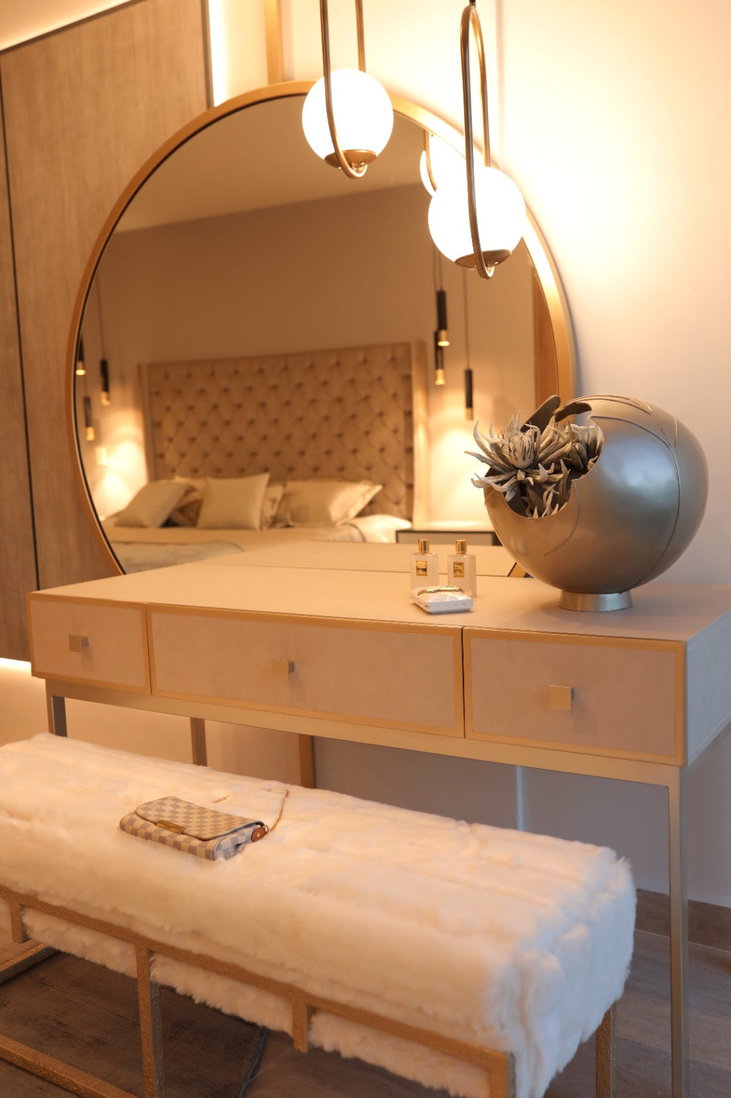 Cada elemento es una declaración de sofisticación: la madera cálida, el mármol imponente, los tejidos suaves que susurran confort. La composición, medida con precisión, transforma la estancia en una experiencia sensorial única, donde la belleza se percibe no solo con la mirada, sino con el alma.